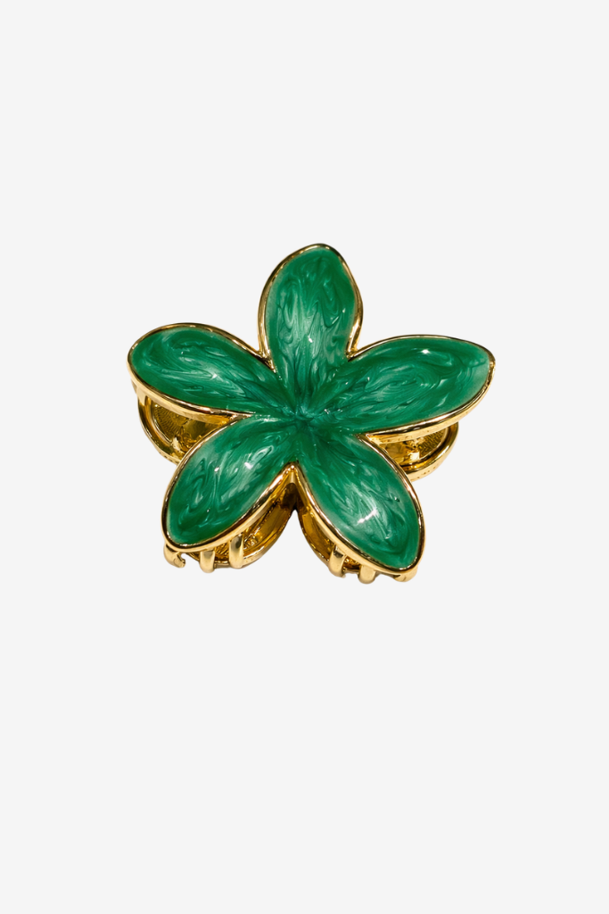 Account aanmakenDe Haarclip Bloem Groen is een echte eyecatcher voor je haar. Het grote bloemdesign in een frisse groene kleur gecombineerd met gouden details zorgt voor een speelse en luxe uitstraling.