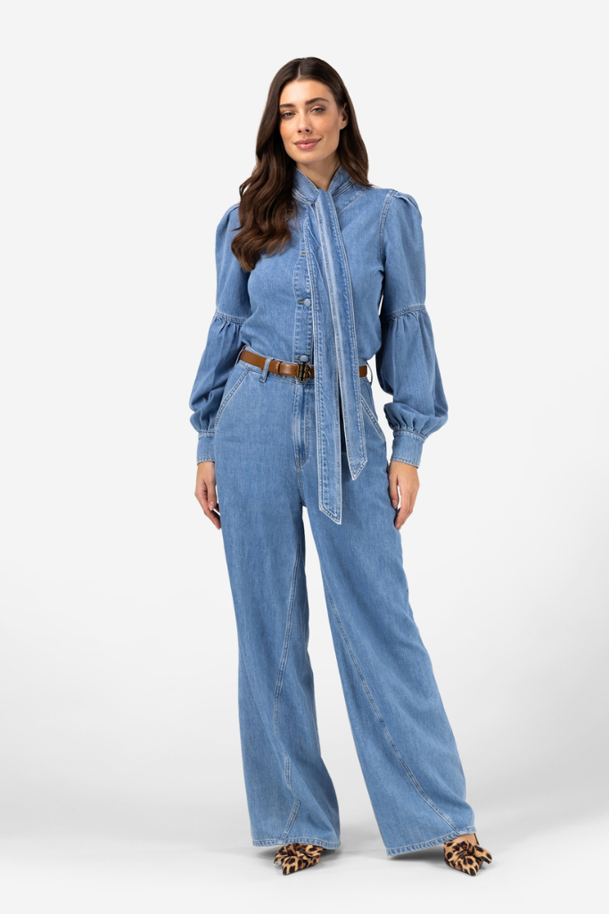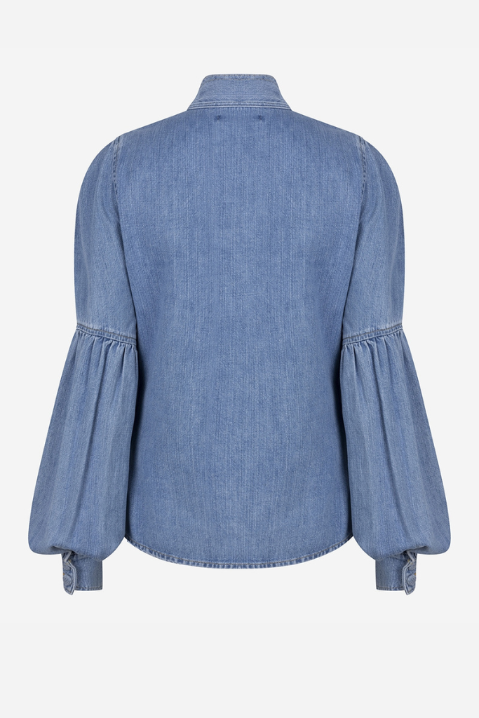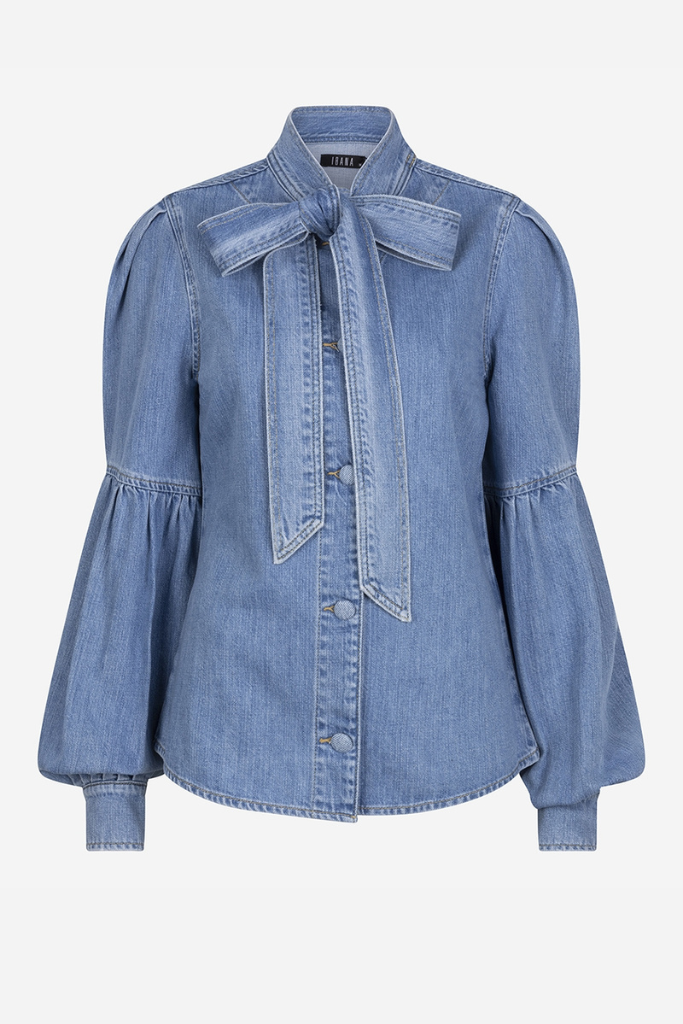 Account aanmakenDe Ibana Tolena Blouse in light denim heeft een frisse, eigentijdse kleur en heeft een vrouwelijke uitstraling dankzij de speelse pofmouwen en het elegante strikkoord in de nek. Deze blouse is gemaakt van een duurzame mix van 80% biologisch katoen en 20% lyocell, wat zorgt voor een zachte en soepele feel. De ronde halslijn, knoopsluiting aan de voorzijde en verfijnde afwerking maken deze blouse tot een veelzijdig item in je garderobe.