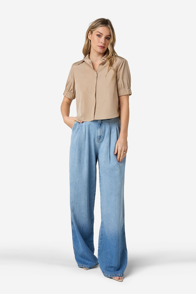 Account aanmakenDe Ibana Bonnie Taft Zijde Blouse in de kleur Ostra Beige is een moderne essential met een verfijnde uitstraling. Deze cropped blouse is gemaakt van 100% polyester met een zijdeachtige finish, wat zorgt voor een luxueuze glans en een zachte touch. De korte mouwen hebben een lichte plooiing en elastische afwerking, wat een speels accent toevoegt aan het minimalistische design.