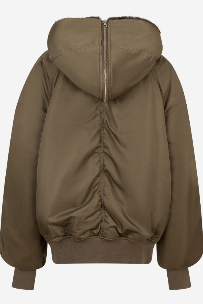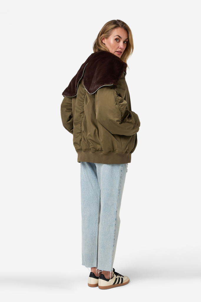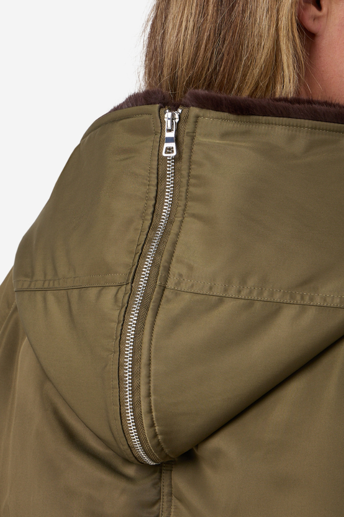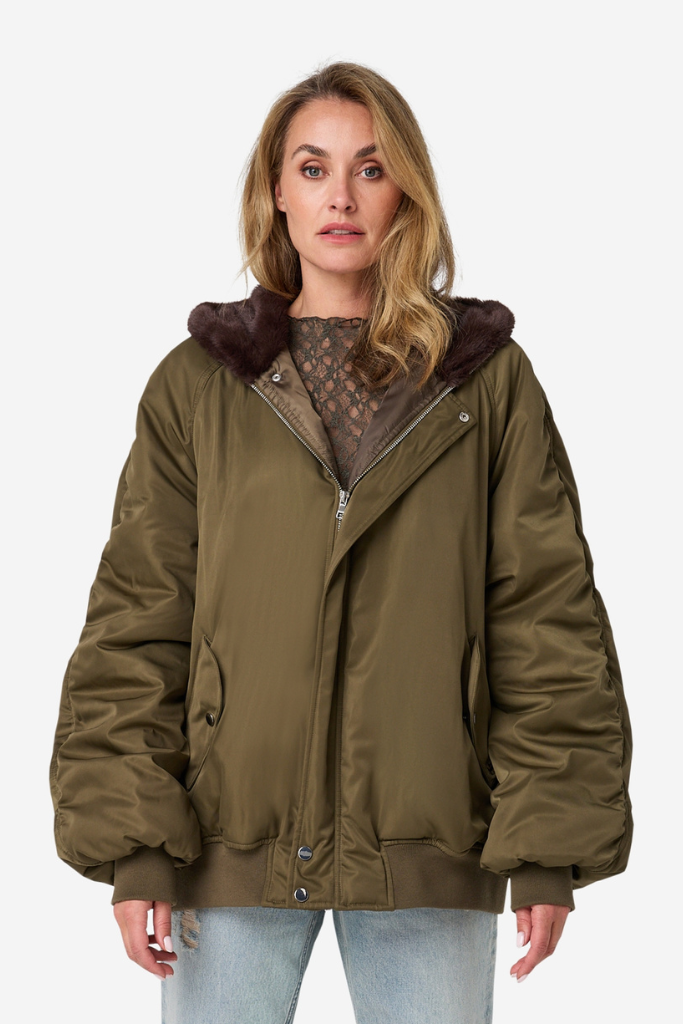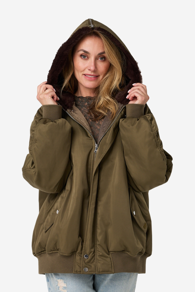 Account aanmakenDe Ibana Caylee Jas Olive Night geeft jouw garderobe een moderne, stoere touch. Deze oversized jas is uitgevoerd in een luxueuze, soepele stof en heeft een rechte ritssluiting en afritsbare capuchon – ideaal voor wisselvallige dagen. De voering zorgt voor extra comfort, terwijl de twee steekzakken praktisch én mooi zijn afgewerkt. Het silhouet heeft bomberjack-invloeden, met een relaxte fit die moeiteloos combineert met zowel chique als casual looks.