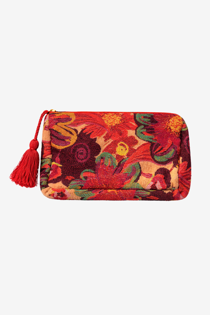 De beautybag is gemaakt van een stevige, geweven stof en heeft een zachte structuur, waardoor je essentials goed beschermd blijven. Met een afmeting van 33 cm breed en 20 cm hoog biedt deze tas voldoende ruimte voor make-up, verzorgingsproducten en reisbenodigdheden. De ritssluiting met kwastje geeft een speels en stijlvol detail.