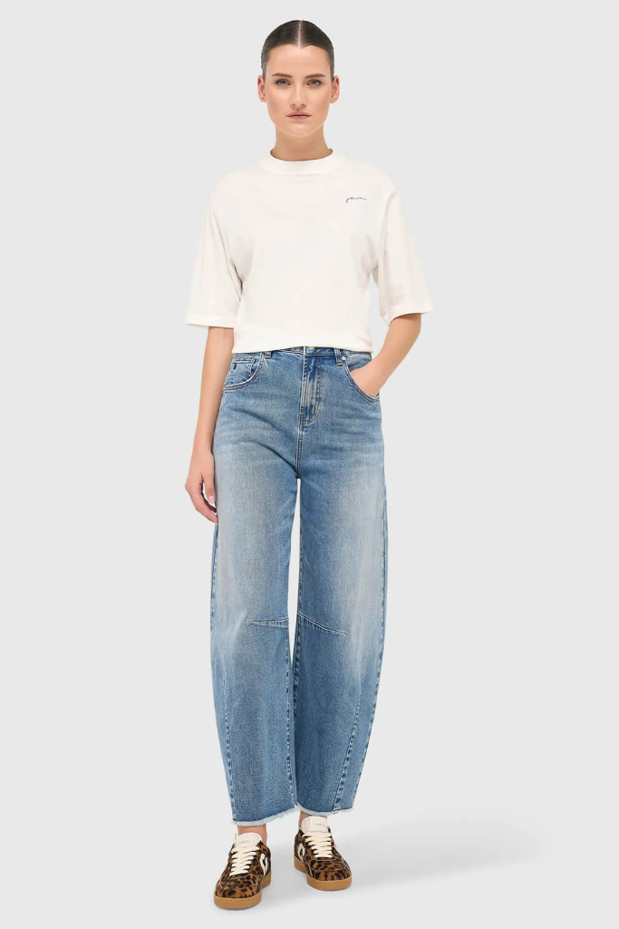 De klassieke ronde hals, korte mouw en regular fit zorgen voor een tijdloos silhouet dat soepel om het lichaam valt. De subtiele tekstprint voegt een eigentijdse touch toe zonder op te vallen – ideaal voor vrouwen die houden van rustige luxe.