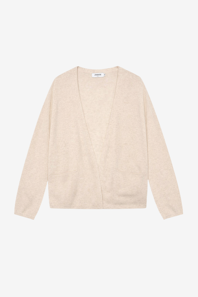 Dankzij de lange mouwen en het rechte silhouet kun je dit vest eindeloos combineren. Draag het over een blouse en pantalon voor een verfijnde lagenlook of over een jurk voor extra warmte op frisse dagen. De zachte beige tint is tijdloos en veelzijdig.