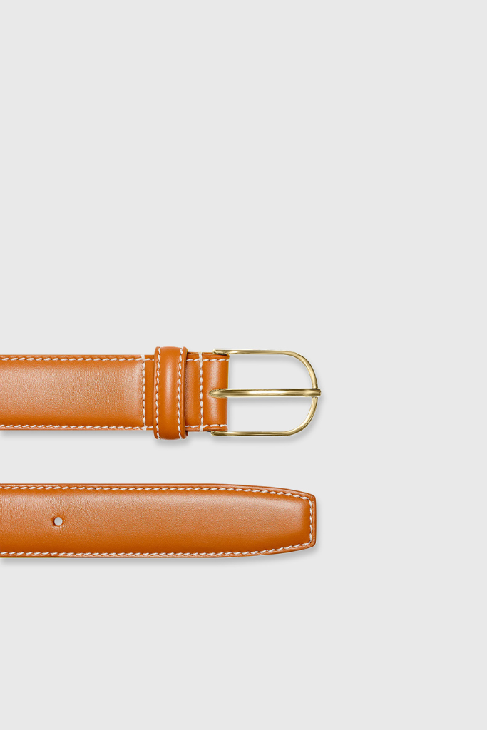 De Janice Chase riem cognac goud, met Italiaanse handgemaakte afwerking en luxe kalfsleer, geeft elke look een stijlvolle en tijdloze upgrade.