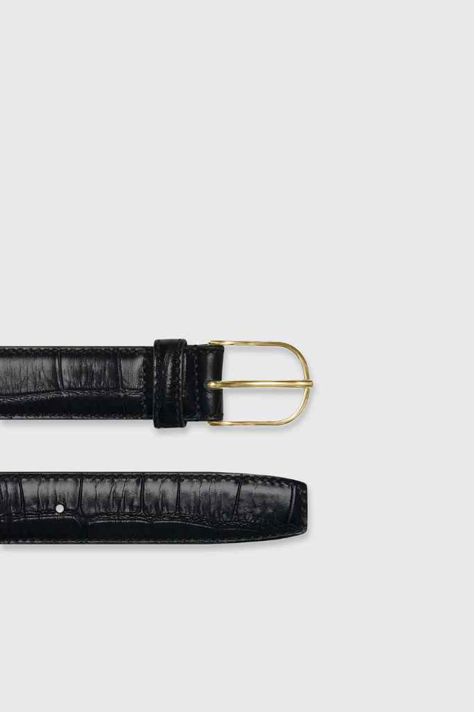 Account aanmakenDe Janice Chase riem zwart croco goud is een stijlvol en tijdloos accessoire, vervaardigd van hoogwaardig kalfsleer en met de hand gemaakt in Italië. De 3 cm brede riem is voorzien van een subtiel croco-reliëf en een elegante gouden gesp (3,2 x 4,2 cm) die moeiteloos balanceert tussen stoer en chic. Elk detail, van de verfijnde stiksels tot de luxe lederen lus, straalt vakmanschap en kwaliteit uit.