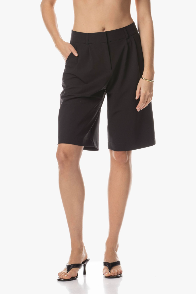 De Japan TKY Beniko Capri Pantalon deep black is een elegante bermuda in comfort travel kwaliteit met wijdvallend silhouet en verfijnde plooien voor een stijlvolle, luchtige zomerlook.