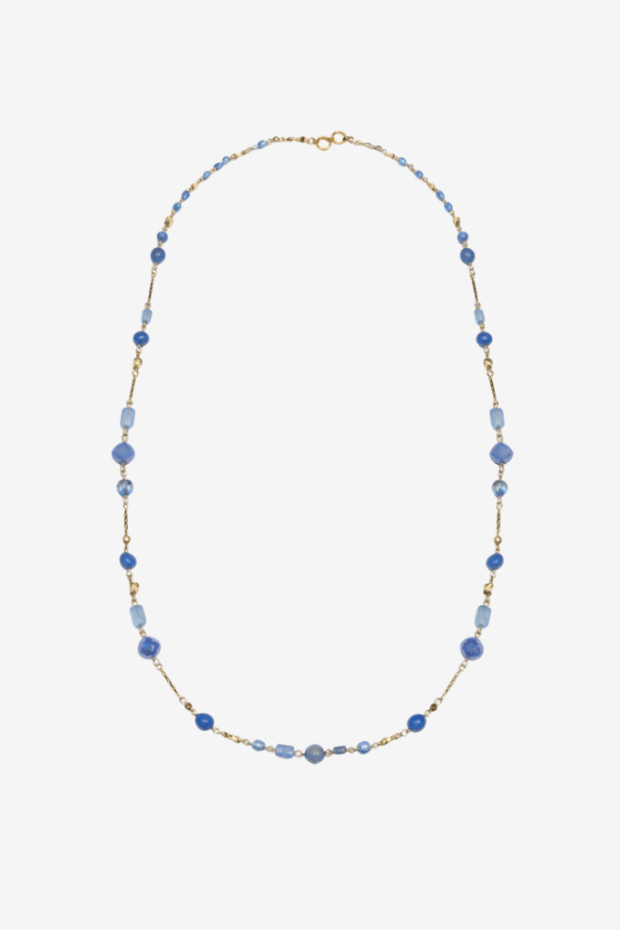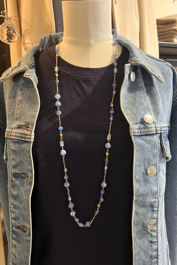 Account aanmakenDe Ketting Lang Jade blauw is een elegante en verfijnde accessoire met een frisse uitstraling. De combinatie van blauwe jade kralen en gouden details zorgt voor een stijlvolle en luxe look.