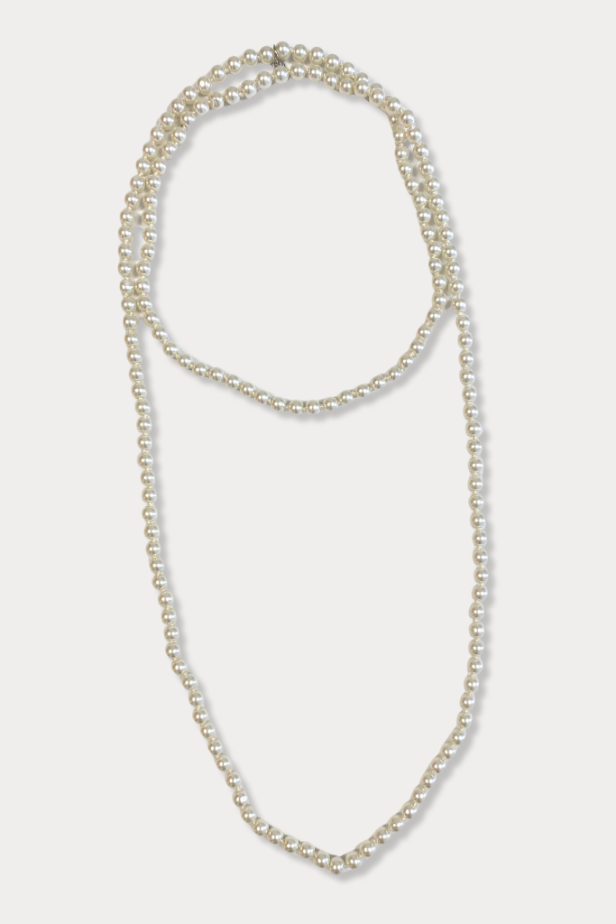Account aanmakenDe RIVS Ketting lange parel wit is een stijlvolle parelketting van maar liefst 154 cm lang. De glanzende, ronde parels geven deze ketting een klassieke en vrouwelijke uitstraling. Dankzij de extra lengte draag je dit item zowel enkel als dubbel om de hals – ideaal voor wie houdt van variatie in styling. De ketting voegt moeiteloos een elegante touch toe aan zowel een blouse, jurk als een basic trui.