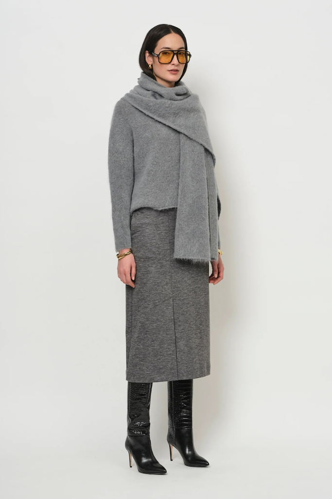 Account aanmakenDe La Salle Alpaca Shawl in grey is een stijlvolle en veelzijdige accessoire die moeiteloos past bij elke garderobe. Gemaakt van dezelfde zachte alpaca-wolmix als de La Salle Boxy Cardigan, biedt deze sjaal een comfortabele warmte en lichtgewicht gevoel. Door de toevoeging van elastaan valt de stof mooi en blijft de vorm behouden.