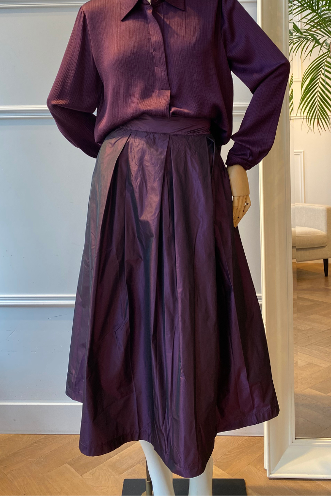 Account aanmakenOntdek de La Salle Box‑Pleat Skirt in een diepe, koninklijke paars tint, een echte eyecatcher. Gemaakt van 100 % biologisch katoen met een subtiele scheerwolmix voor extra structuur en draagcomfort. De klassieke plisséplooien geven de rok een elegante beweging, perfect voor zowel de werkdag als een avondje uit.