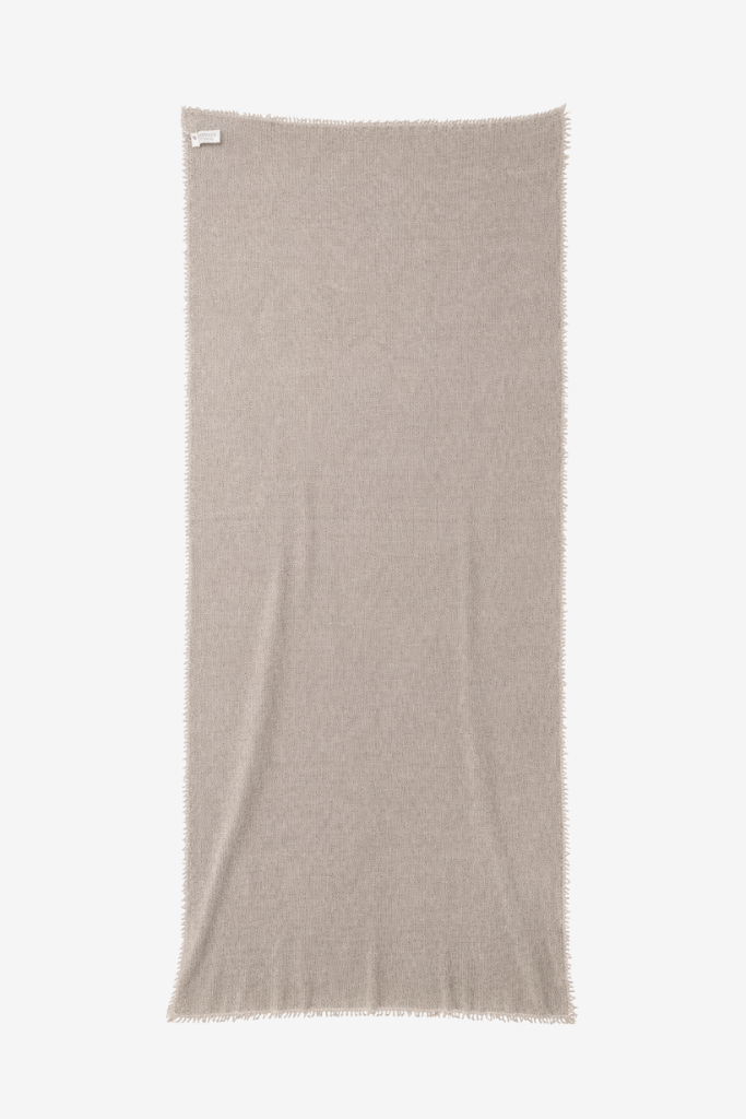 De sjaal heeft een royaal formaat en een lichtgewicht structuur, afgewerkt met subtiele franjes voor een klassieke, vrouwelijke touch. Dankzij de hoogwaardige kwaliteit valt hij soepel en draagt hij comfortabel, zonder zwaar aan te voelen.
