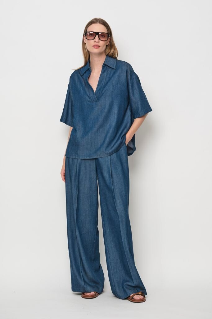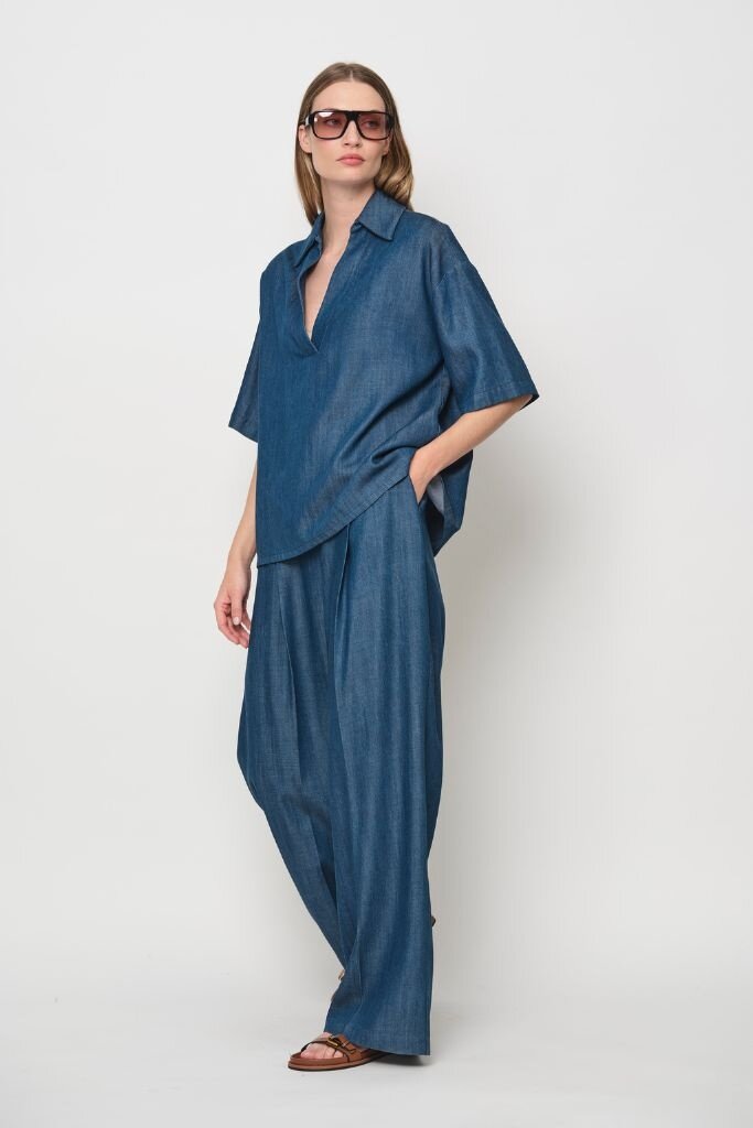 Beoordeel La Salle Pleated Wide Trousers demin