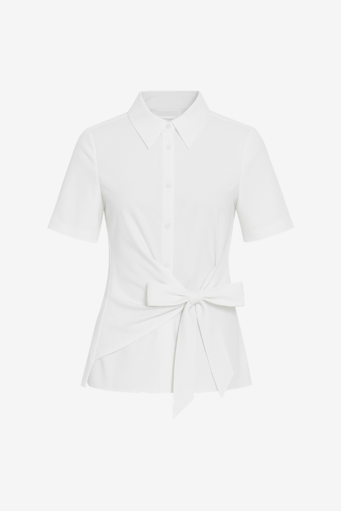Account aanmakenDe La Salle Side Tie Wrap Shirt in white is een veelzijdige essential die stijl en comfort combineert. Deze blouse met korte mouw heeft een klassieke kraag, doorknoopsluiting en een vrouwelijke overslag met strik aan de zijkant. De luxe stretchkwaliteit (75% polyamide, 25% elastaan) zorgt voor een mooie pasvorm en kreukvrij draagcomfort.