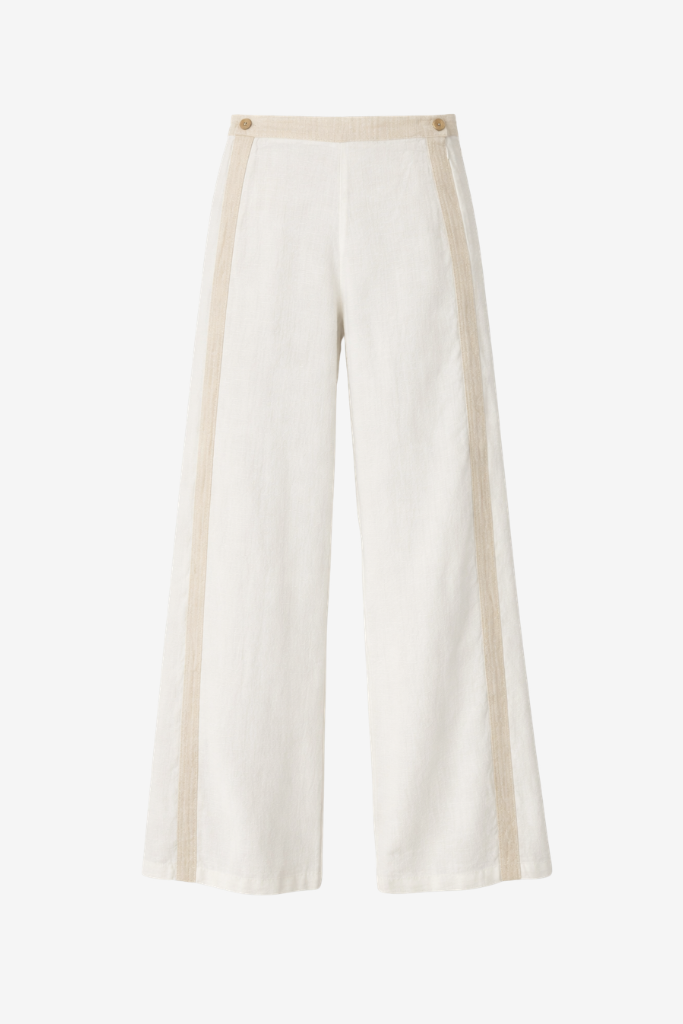 De wijde pijpen vallen soepel langs het been en creëren een elegant, verlengend silhouet. De subtiele zijbies en verfijnde afwerking aan de taille zorgen voor een exclusieve touch. Dankzij de L32-lengte valt de broek mooi lang, ideaal met een sandaal of hak.