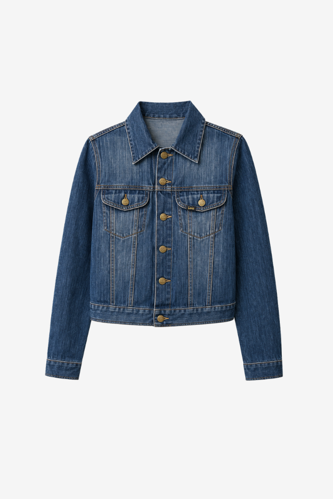 Het jasje sluit met karakteristieke metalen knopen, heeft klepzakken op de borst en tonale stiksels voor een authentieke uitstraling. De lengte valt net op de taille, wat het ideaal maakt om te dragen over jurken, high-waist broeken of jumpsuits.