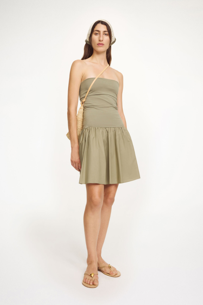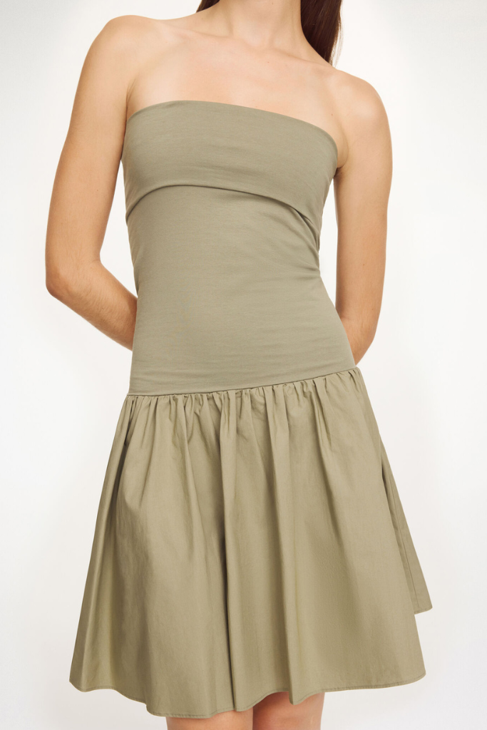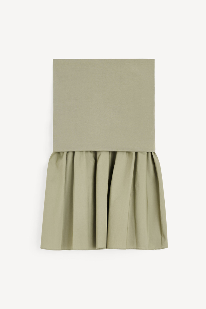 Draag deze mini-jurk los met sandalen op een warme dag of combineer met een blazer of blouse voor een gelaagde look. De diepe groentint geeft het geheel een natuurlijke, moderne uitstraling.