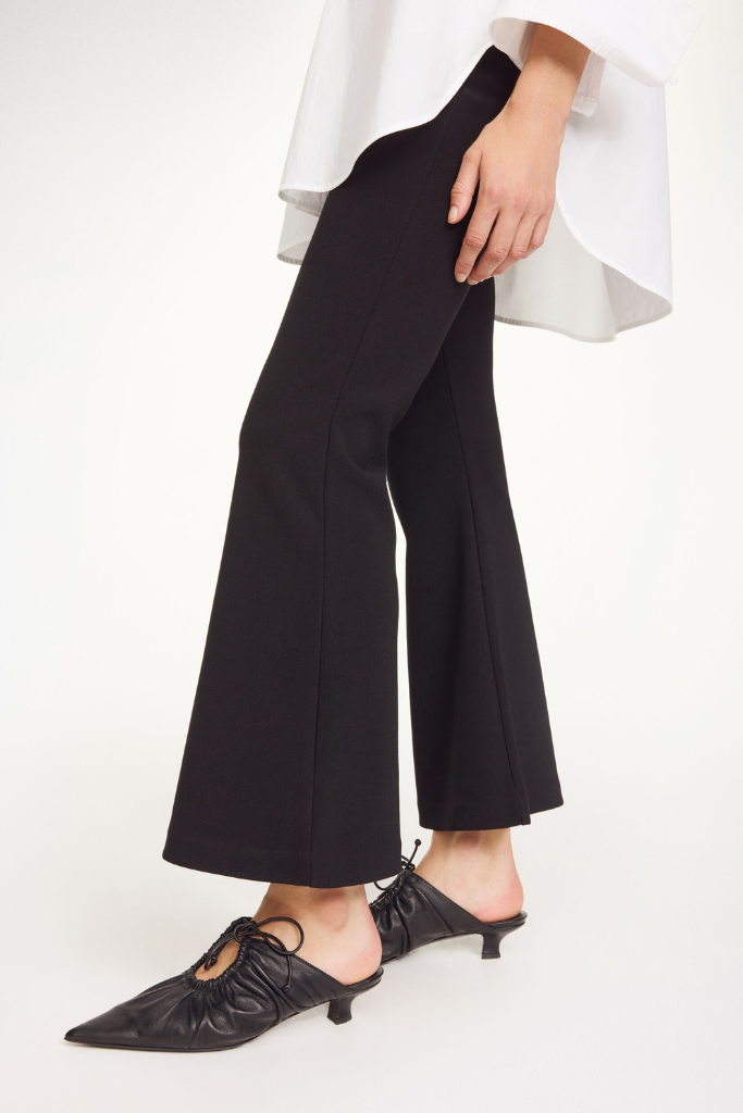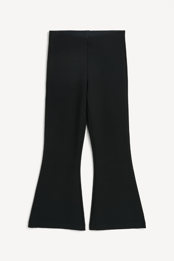 Account aanmakenDe By Malene Birger Vilanna pantalon in zwart is een elegante combinatie van comfort en moderne snit. Gemaakt van een luxueuze stofblend (56% gerecycled polyester, 39% polyester, 5% elastaan), biedt deze regular fit broek een flatterende mid‑waist, een flared silhouet én cropped pijpen, ideaal met oversized blazer of gebreide top voor een moeiteloze weeklook.