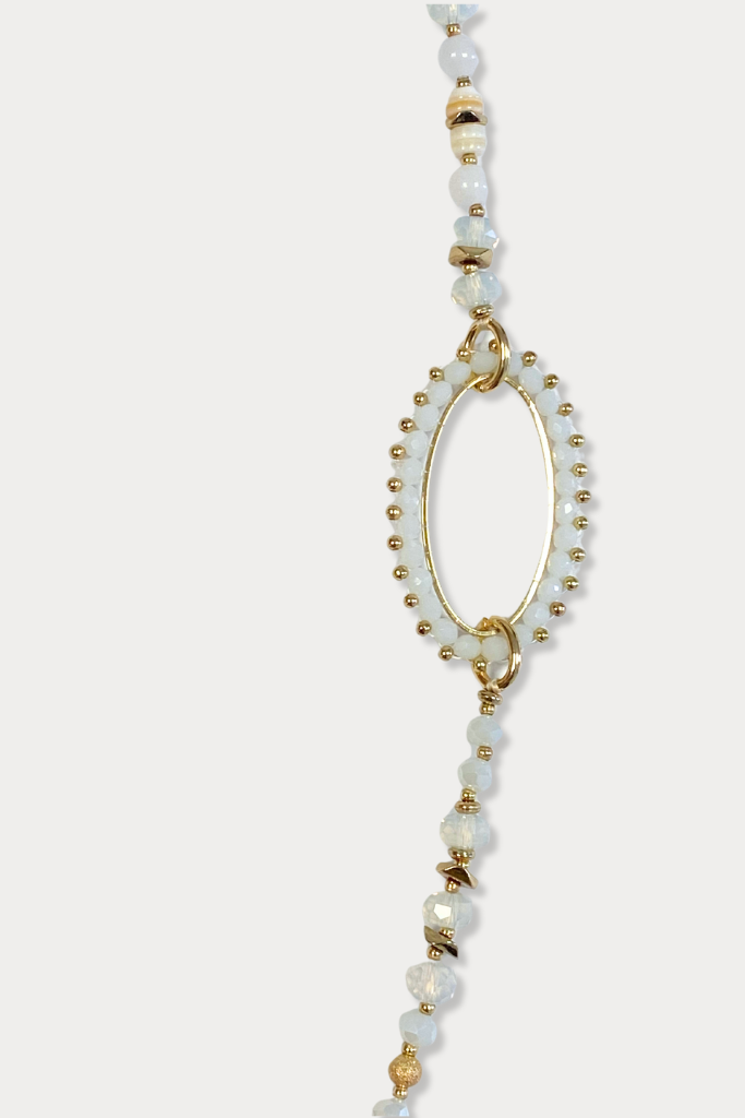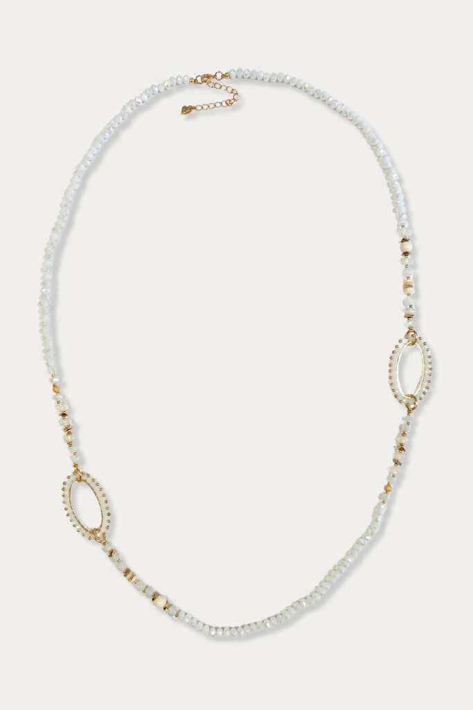 Account aanmakenDe RIVS Melk kristal lange ketting is een sierlijke ketting van 105 cm, ontworpen om subtiel te schitteren bij elke beweging. Deze ketting is opgebouwd uit fijne melkachtige kralen, afgewisseld met gouden details voor een extra vleugje luxe. De ovale schakels met kristallen geven het ontwerp een moderne twist en zorgen voor een verfijnd silhouet.