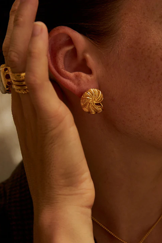 De Mimi Et Toi Chloe earrings zijn prachtige gouden schelp oorbellen die perfect passen bij je Chloé ketting of die je ook alleen kunt dragen. Gemaakt van 18 krt verguld messing en afgewerkt met hoogglanzende polish. De oorbellen voegen een stukje elegantie toe aan elke outfit. Perfect voor elke gelegenheid.