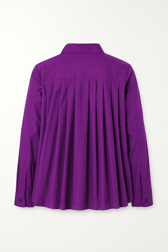 Account aanmakenHet Niù Pleated Shirt in ume is een verfijnde blouse in een diepe paarstint die warmte en elegantie uitstraalt. Gemaakt van 100% polyester met een fijne plisséstructuur, voelt deze blouse licht en soepel aan op de huid. De klassieke kraag en verborgen knoopsluiting aan de voorzijde – stijlvol weggewerkt achter een smalle geplooide strook, geven de top een cleane, vrouwelijke uitstraling. De achterkant is subtiel versierd met een grafisch patroon dat het ontwerp net dat beetje extra geeft.