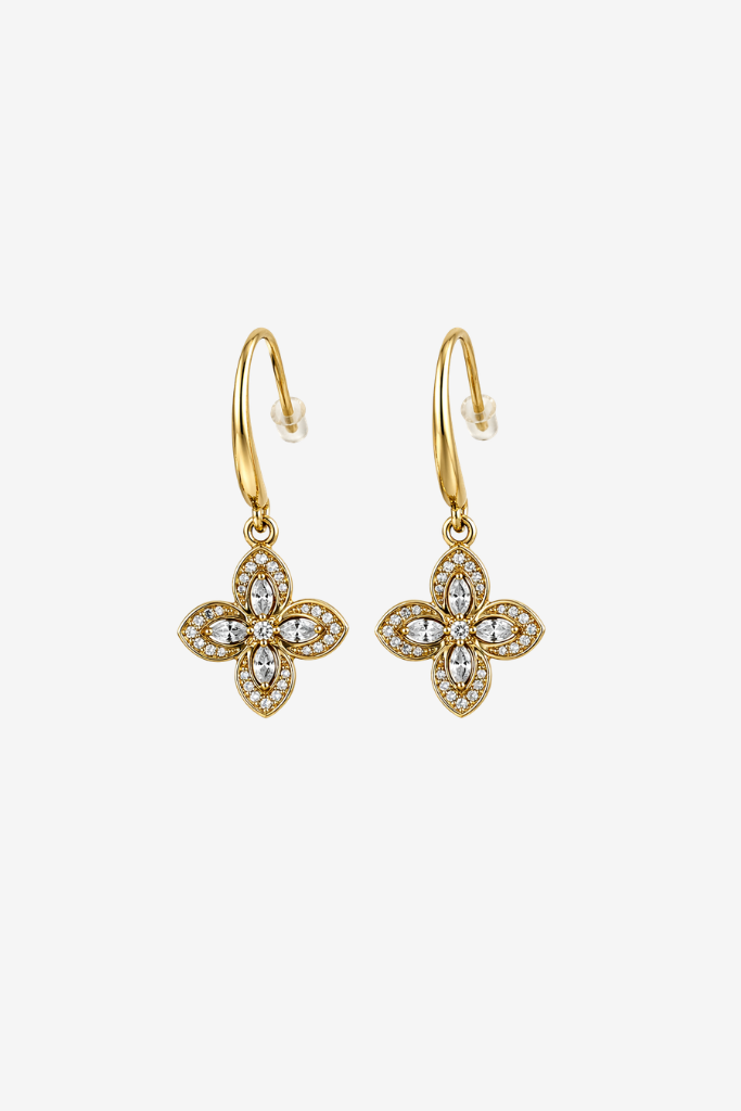De fijne goudkleurige hanger geeft de oorbel een luxe en tijdloos karakter, terwijl de delicate vorm speelsheid toevoegt. Deze oorbellen zijn perfect voor zowel dagelijks gebruik als voor een chique gelegenheid waarbij je net dat beetje extra wilt toevoegen.