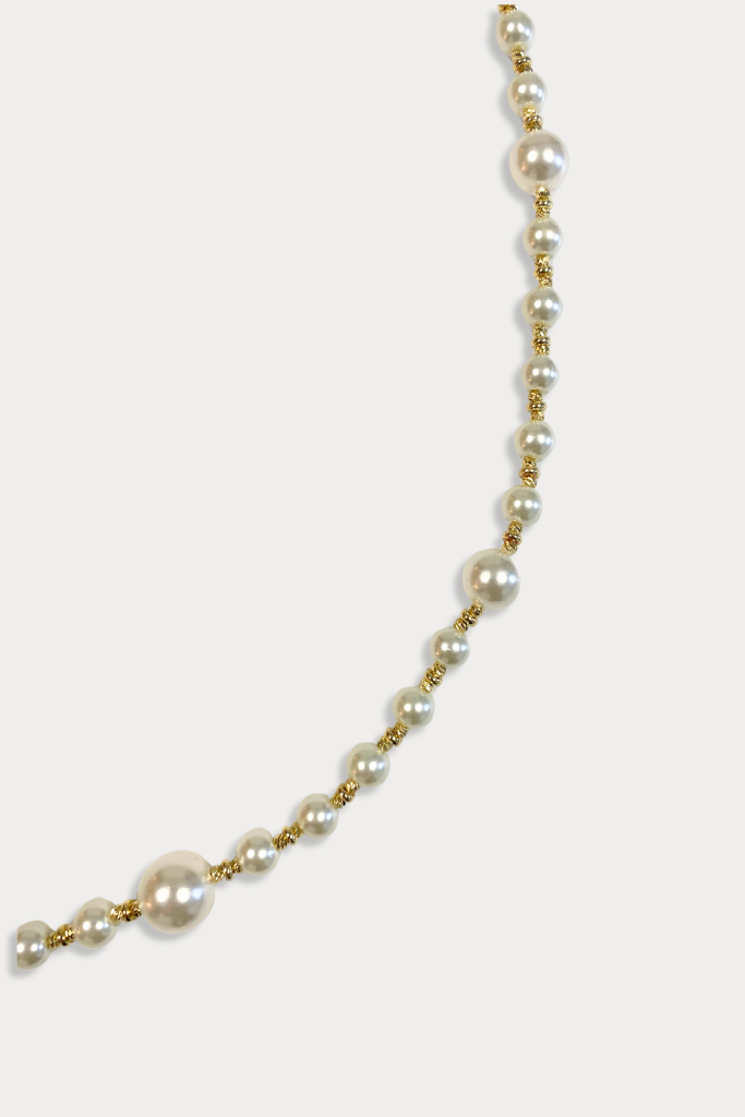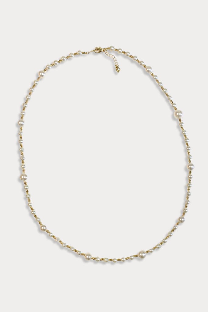 De afwisseling van kleine en grotere kralen zorgt voor een dynamisch effect, terwijl de neutrale tinten de ketting veelzijdig maken. Perfect voor zowel alledaags gebruik als feestelijke gelegenheden.