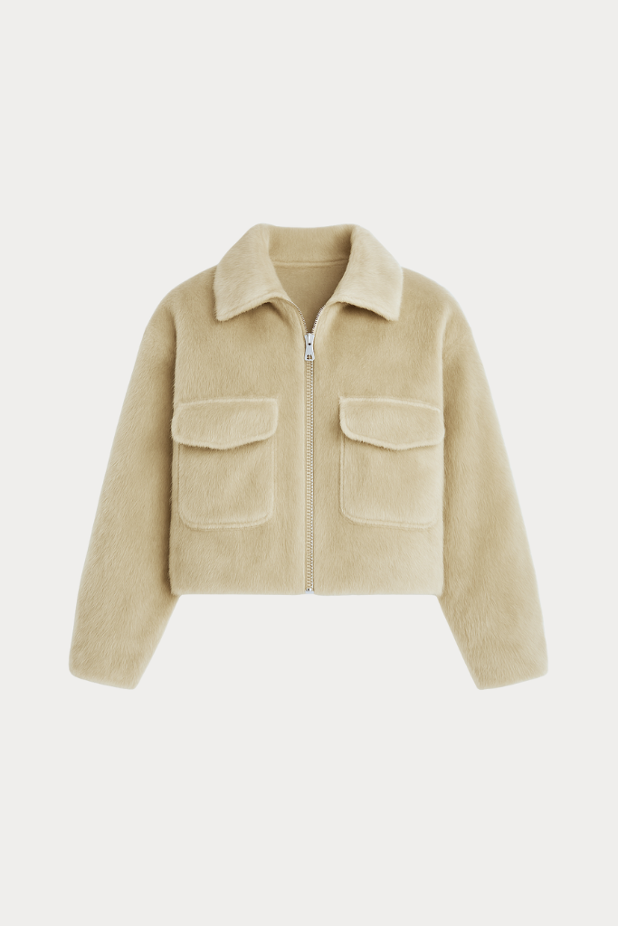 De jas sluit met een zilverkleurige rits en heeft twee grote borstzakken met klep. De zachte voering en volumineuze textuur maken dit item ideaal voor frisse dagen waarop je er warm én stijlvol uit wilt zien. Combineer ‘m met een wollen pantalon, jeans of midi-rok voor een elegante everyday look.