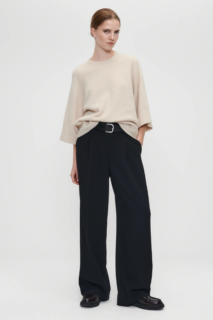 Deze pantalon is vervaardigd uit Zenggi’s karakteristieke gerecyclede Japanse Kozo‑crêpe, een stof met een mooie val, die soepel over het lichaam glijdt en een luxe uitstraling heeft.