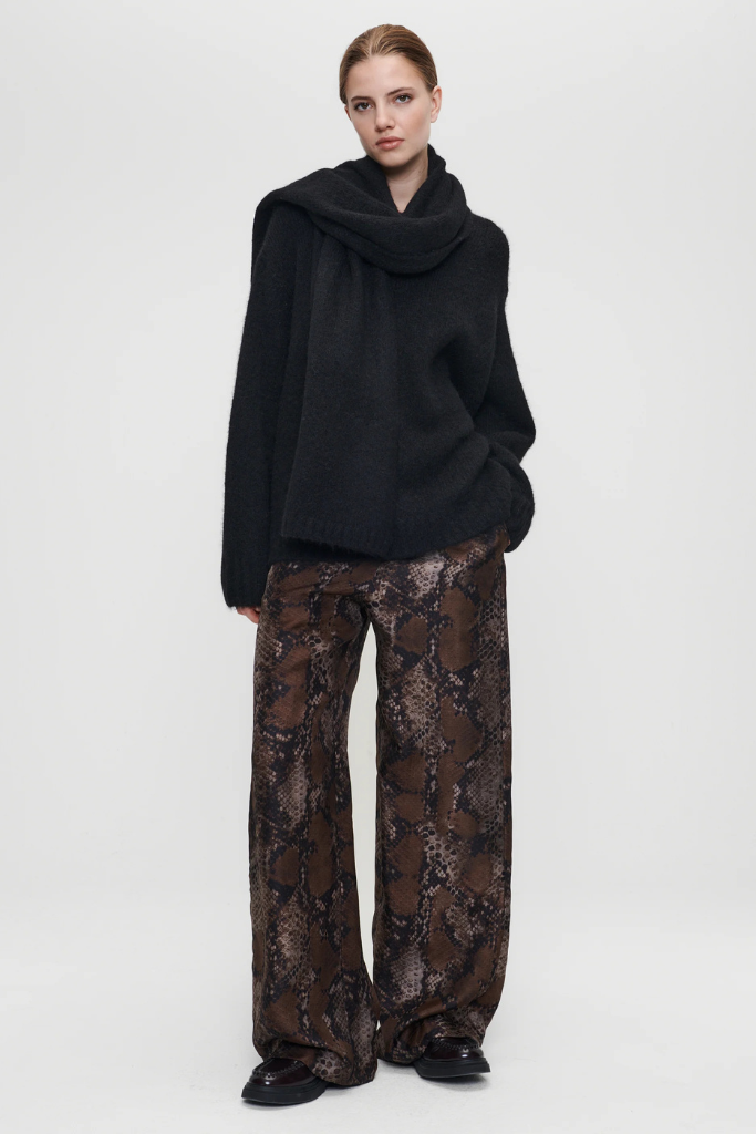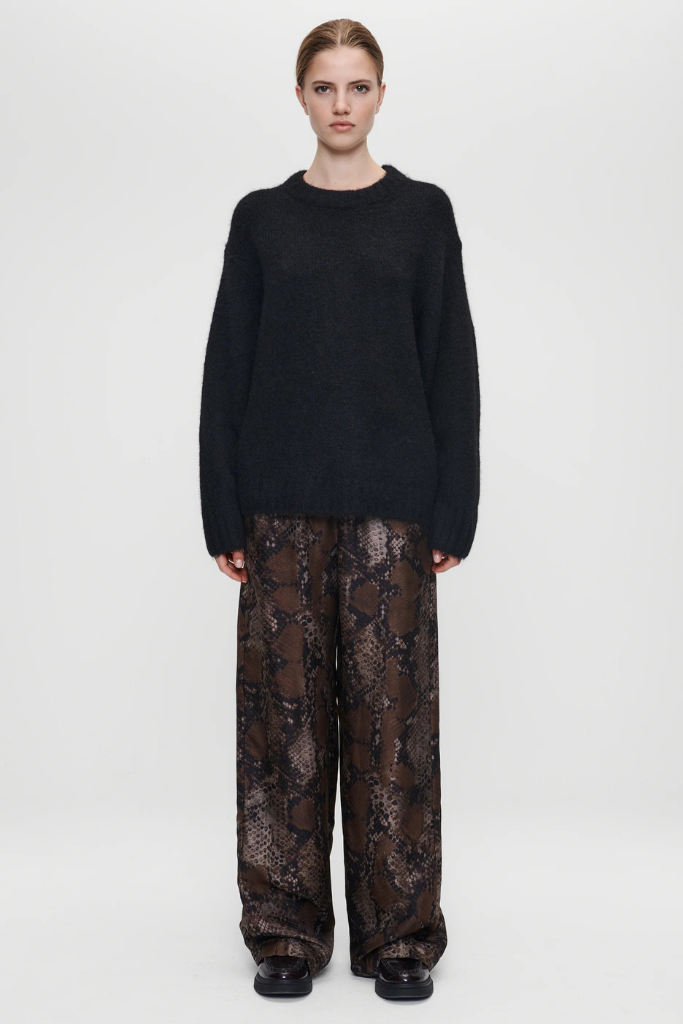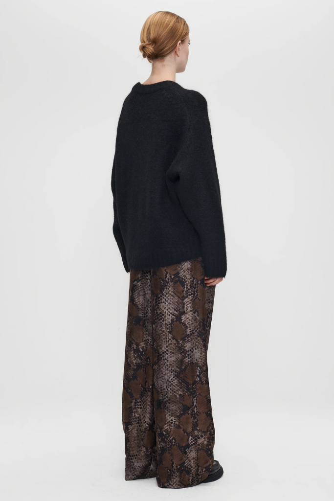 De trui valt licht oversized en flatteert door zijn nonchalante elegantie. Combineer hem casual met jeans en sneakers of draag hem stijlvol met een pantalon en blazer. De maat valt normaal.