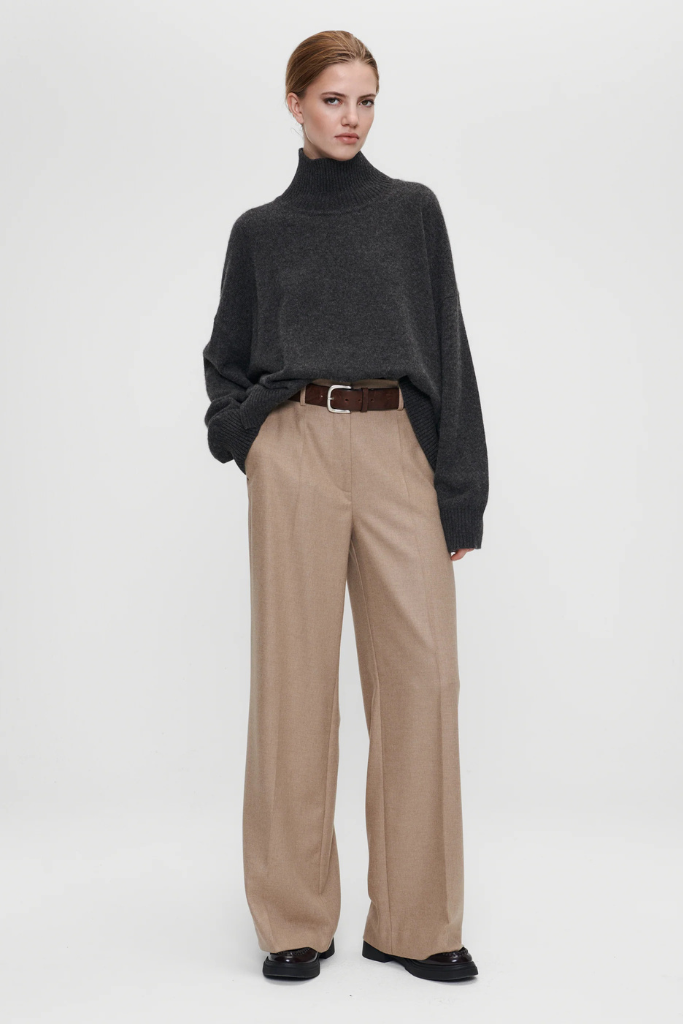 Stijladvies: combineer met een fijngebreide top of blouse in crème‑ of wittonen voor een harmonieuze, moderne look. Voeg een blazer in hetzelfde of contrasterend materiaal toe voor een gelaagde en verfijnde outfit.